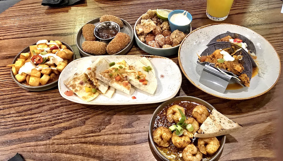 “My brother and I went here for the bottomless tapas… when I tell you, I’m definitely going again! The pricing was so reasonable and the dishes were AMAZING! Our favourite plates were the: tacos, sunshine salad and quesadillas! Everything else was great too but these stood out the best. We got through 3 rounds of food ahahaha, and went straight to sleep after. Meal of the day! I do recommend this deal though, we actually got the £5 extra each added on for a larger food variety and we weren’t disappointed. It was a little bit sad that we couldn’t try the buttermilk chicken but it was our fault as we didn’t create a booking. Make a booking before you go guys, so they are prepared for what you want to order! The servers were so sweet, but since they were working back and forth, getting noticed was a little bit of a hassle but no biggie!”